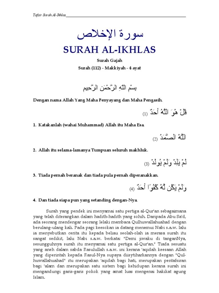 Maksud Surat Al Ikhlas - Surah 3 Kul Pdf Rumi Maksudnya Dan Kelebihan The Mizzone